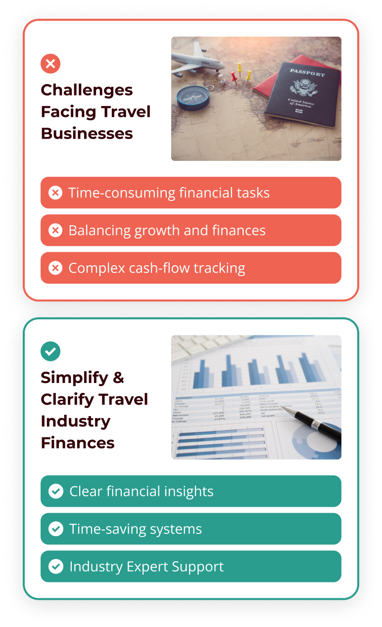 CFO-level support and guidance for ready-to-scale travel businesses.